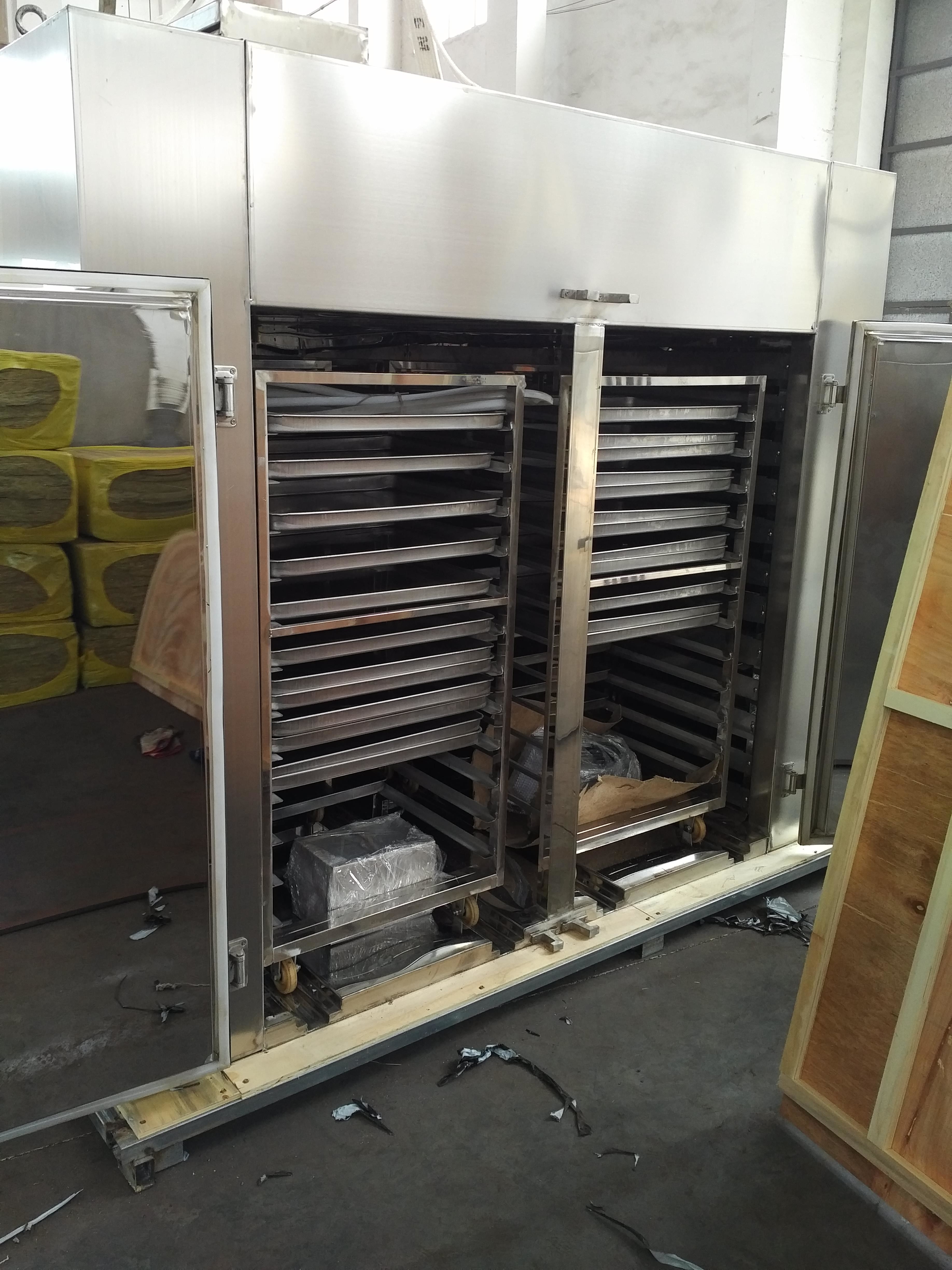 4. Le four de séchage de fruits à air chaud est en acier inoxydable, équipé d'un ventilateur à flux axial, d'un système de contrôle thermostatique automatique et d'un système de contrôle par ordinateur.